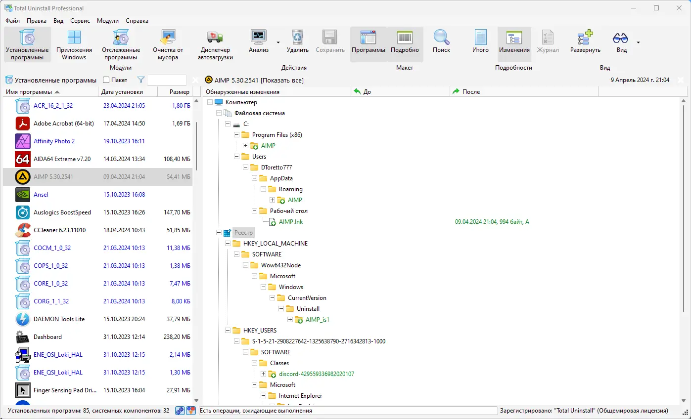 - Обеспечивает полное и точное удаление программ без остаточных файлов и записей.