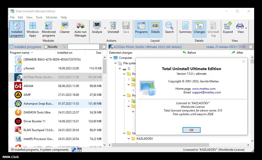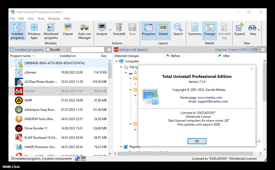 Total Uninstall позволяет контролировать все изменения, вносимые в операционную систему при установке программ. Благодаря технологии сравнения состояния системы до и после инсталляции, утилита определяет все созданные файлы, папки и записи реестра. Это обеспечивает полное удаление программ, включая компоненты, которые стандартный деинсталлятор может оставить.