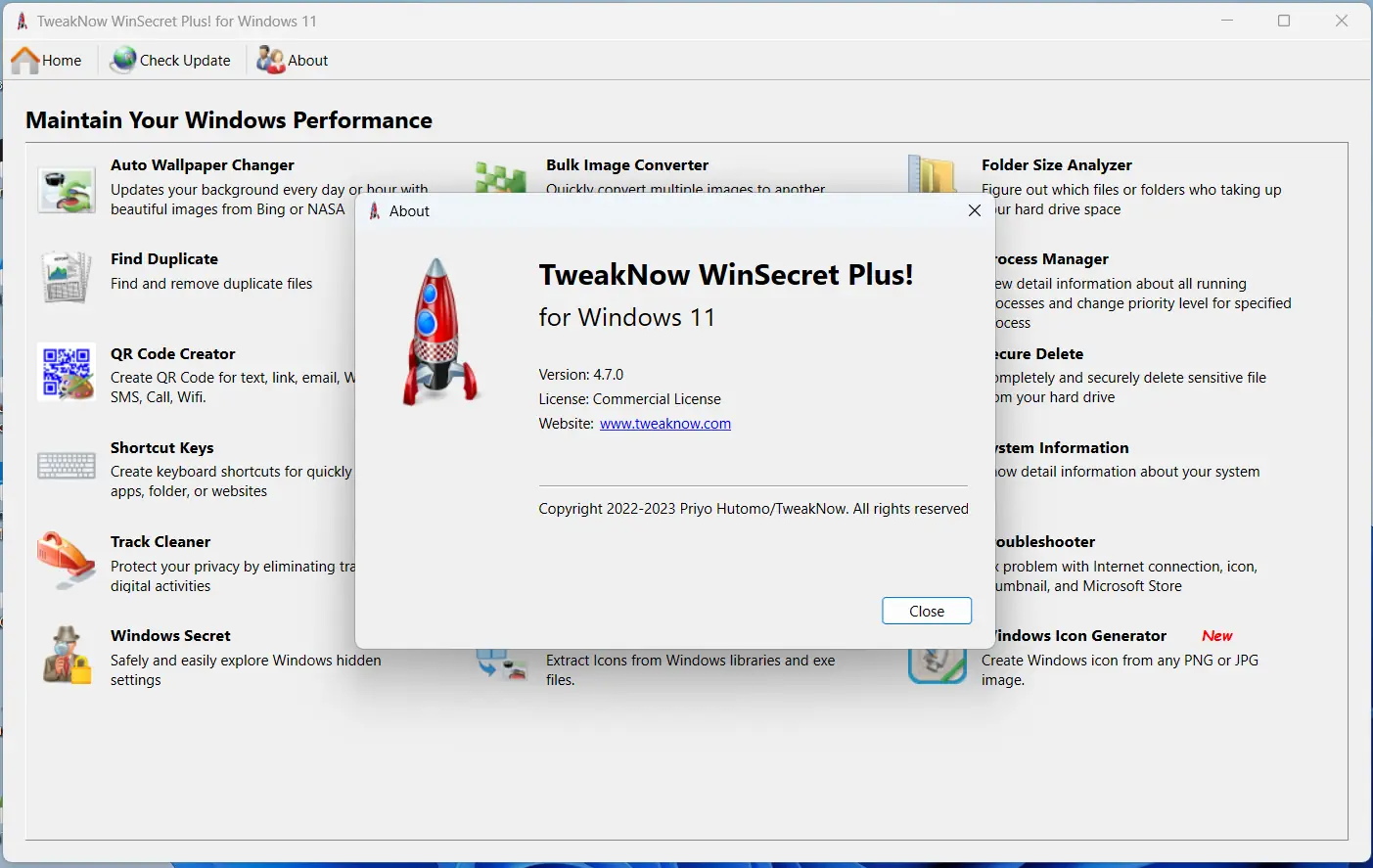 TweakNow WinSecret Plus сочетает в себе функциональность, безопасность и удобство. Plus-версия расширяет базовые возможности за счёт дополнительных модулей, таких как анализ дискового пространства, удаление дубликатов файлов и безопасное стирание данных. Автоматическое определение приоритета для часто используемых приложений улучшает отзывчивость системы. Программа также помогает устранять распространённые проблемы с подключением к интернету, отображением значков и работой Microsoft Store. Поддержка портативного режима позволяет запускать утилиту с флешки без установки.