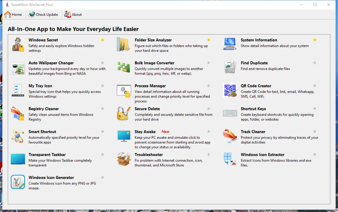 Использование TweakNow WinSecret Plus не вызывает сложностей благодаря чёткой структуре интерфейса. Все функции сгруппированы по категориям: внешний вид, производительность, безопасность, реестр и устранение неполадок. Пользователь может включить старый стиль панели инструментов в проводнике, отключить персонализированную рекламу через рекламный идентификатор или автоматически переключать светлую и тёмную темы приложения в зависимости от системных настроек. Расширенные функции Plus-версии включают ежедневную смену обоев с изображений Bing, анализ объёма папок, поиск дубликатов файлов и детальный мониторинг процессов. Для каждого процесса доступно изменение приоритета, а также отображение информации о потреблении ресурсов. Утилита также предлагает безопасное удаление файлов с гарантированным затиранием данных, что исключает их восстановление. Автоматическое определение приоритета для часто используемых приложений помогает поддерживать высокую отзывчивость системы.