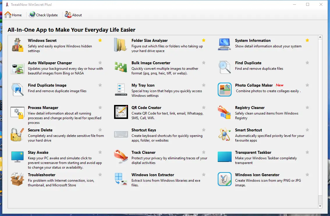 Использование TweakNow WinSecret Plus не требует специальных знаний. После запуска отображается список доступных настроек, сгруппированных по тематическим разделам: интерфейс, производительность, безопасность и приватность. Пользователь может включить или отключить нужные функции одним щелчком. Например, можно вернуть старый стиль панели инструментов в проводнике или отключить персонализированную рекламу, деактивировав рекламный идентификатор. Plus-версия расширяет функционал за счёт автоматического переключения тем и регулярного обновления обоев рабочего стола изображениями с главной страницы Bing. Также доступен анализ дискового пространства, поиск дубликатов файлов и подробный мониторинг запущенных процессов с возможностью изменения их приоритета. Утилита позволяет безопасно удалять конфиденциальные данные, гарантируя, что файлы не подлежат восстановлению. Системная диагностика помогает устранить типичные неполадки, включая проблемы с подключением к интернету и работой Microsoft Store.