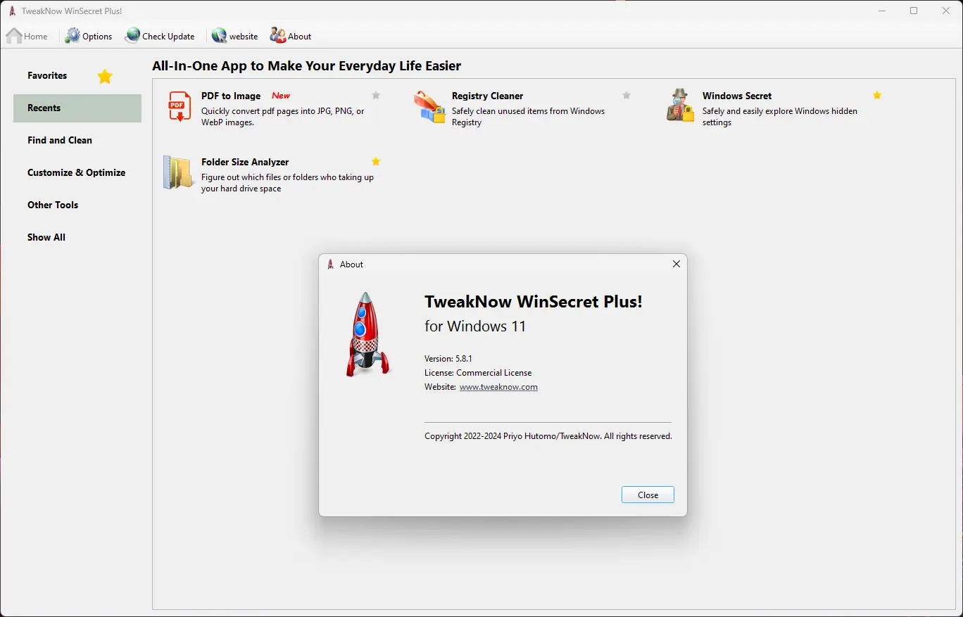 TweakNow WinSecret Plus — это инструмент для тонкой настройки операционной системы Windows 10 и Windows 11, открывающий доступ к скрытым параметрам реестра через интуитивно понятный интерфейс. Программа позволяет изменять внешний вид системы, управлять поведением компонентов интерфейса и оптимизировать работу операционной среды. Подходит как для обычных пользователей, так и для продвинутых, стремящихся к максимальной персонализации.