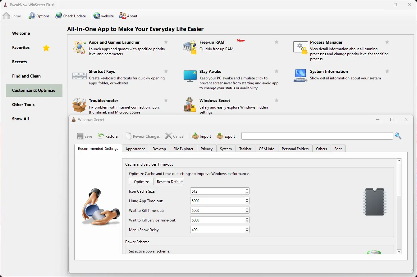 Преимущества TweakNow WinSecret Plus становятся особенно заметны в Plus-версии, где помимо базовых твиков добавлены расширенные системные функции. Программа включает в себя инструменты для оптимизации производительности, анализа дискового пространства и управления фоновыми процессами. Автоматическое переключение тем в зависимости от времени суток и ежедневная смена обоев с изображений Bing добавляют элемент комфорта и визуального разнообразия.