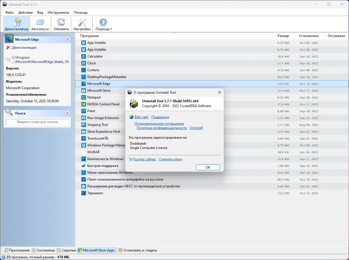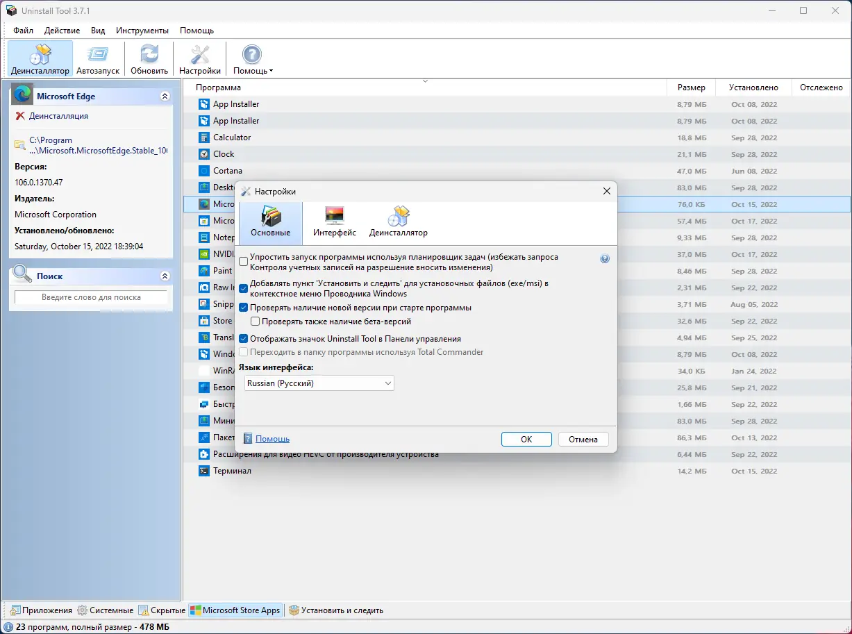 - Обеспечивает полное удаление программ без остатков в реестре и файловой системе.
