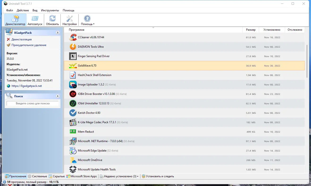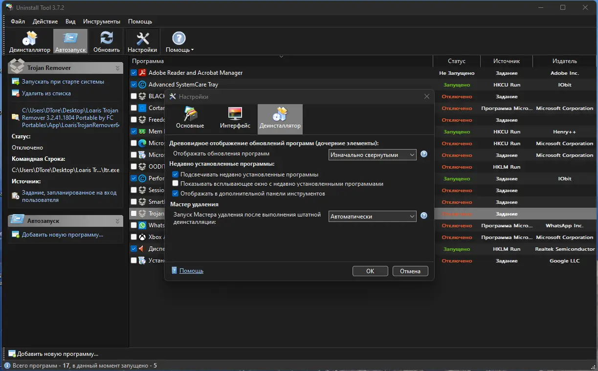 Работа с Uninstall Tool
