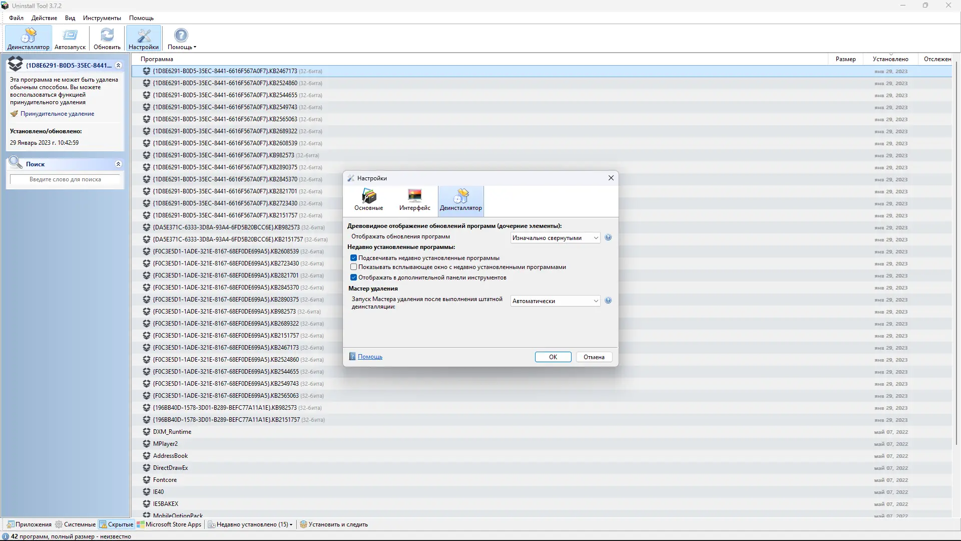 Работа с Uninstall Tool