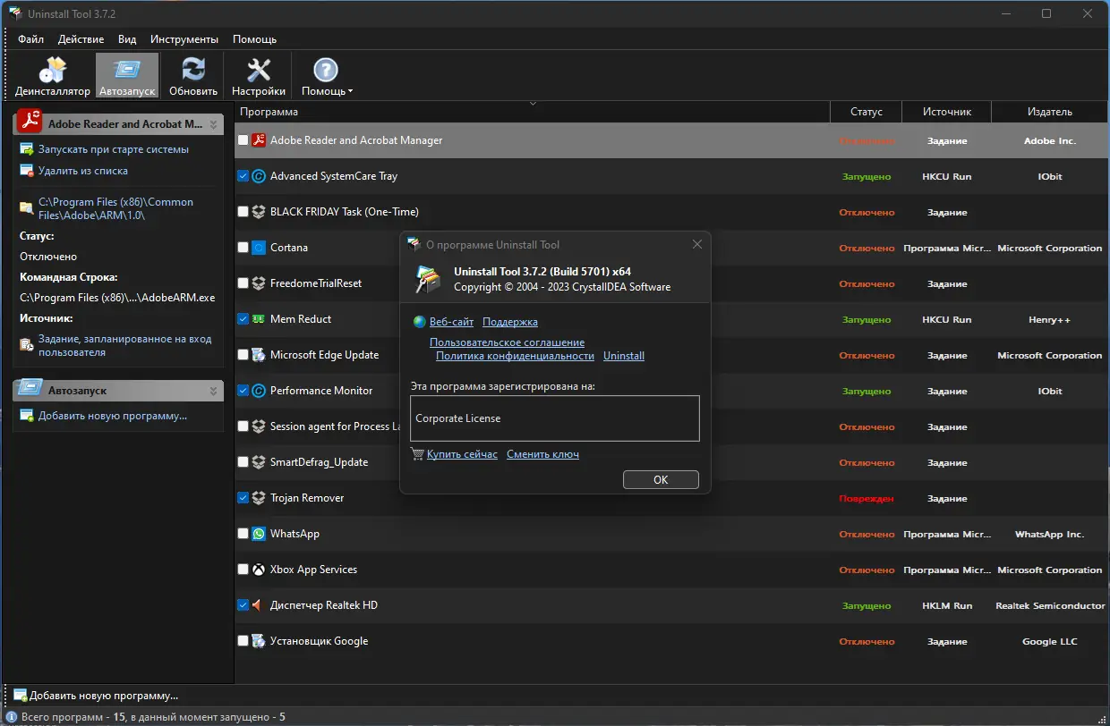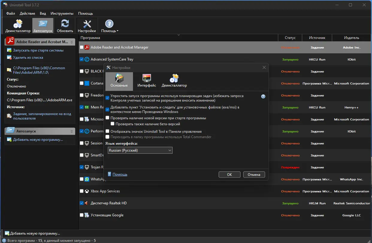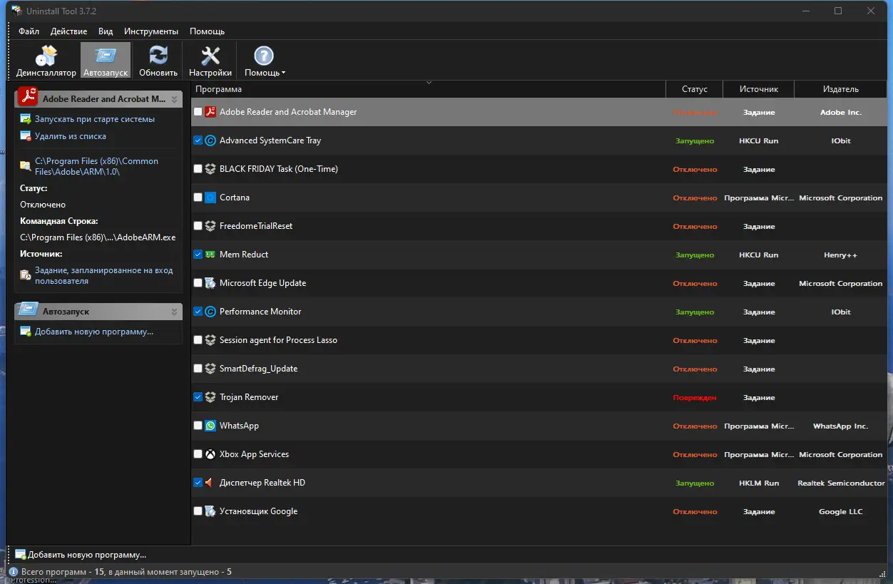 - Управление автозагрузкой с возможностью отключения или удаления нежелательных элементов.