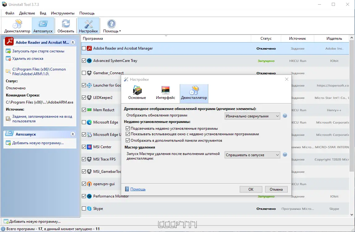 Работа с Uninstall Tool