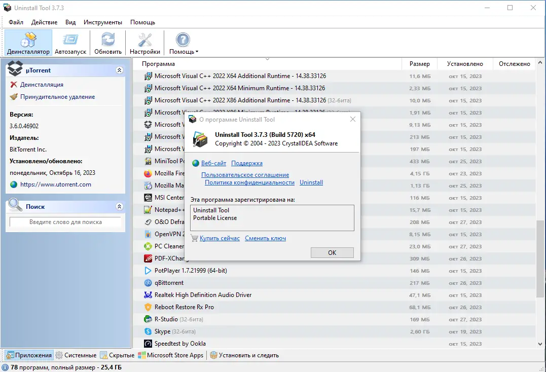 Uninstall Tool — это мощная утилита для деинсталляции программ, способная удалить не только основные компоненты приложений, но и все следы, оставленные в реестре, папках программы, временных файлах и автозагрузке. В отличие от стандартного апплета «Установка и удаление программ», она не оставляет после себя мусор, который со временем замедляет работу системы. Программа поддерживает глубокий анализ установленного ПО, включая скрытые и повреждённые записи, а также предоставляет детальные логи каждой операции.