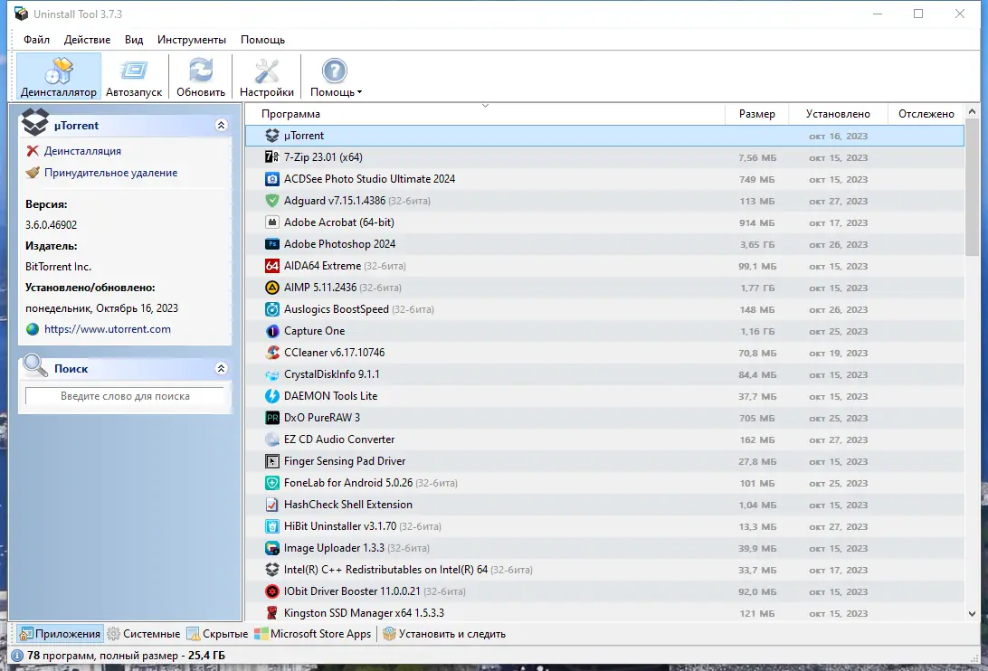 Uninstall Tool удаляет всё — от основных файлов до скрытых ключей реестра, обеспечивая полную очистку системы.