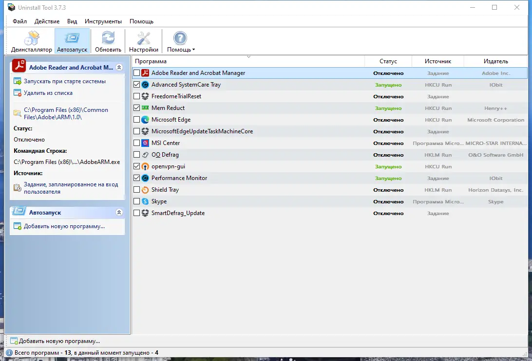 - Управление автозагрузкой Windows с возможностью просмотра источников запуска