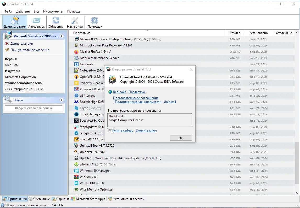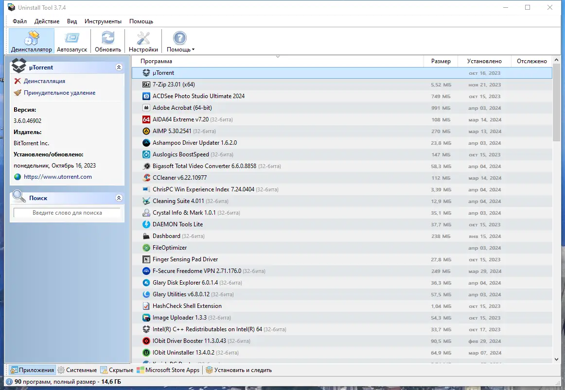 - Поддержка пакетного удаления нескольких программ