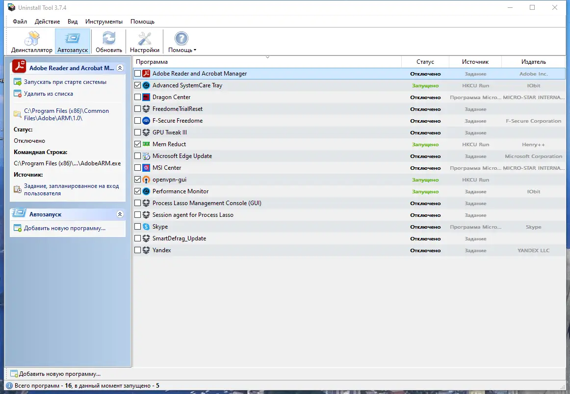 - Управление элементами автозагрузки Windows