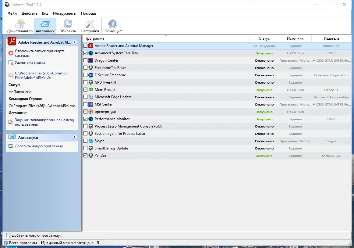 - Управление автозагрузкой Windows с возможностью просмотра источников запуска