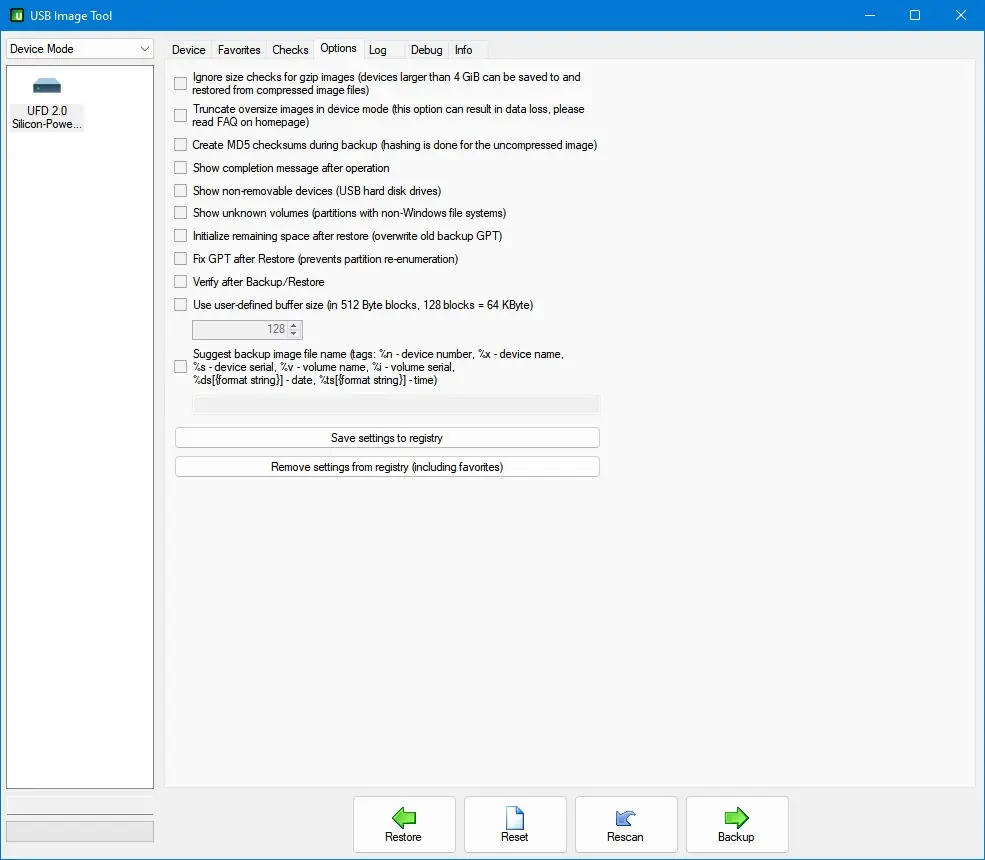 USB Image Tool сочетает в себе простоту использования и функциональность, необходимую для эффективного резервного копирования. Программа не перегружена лишними элементами, но при этом предоставляет доступ к важным инструментам, таким как сжатие, управление профилями и сброс настроек устройства. Несмотря на компактность, она справляется с задачами, сопоставимыми с более сложными аналогами. Отсутствие необходимости в установке делает её идеальной для аварийного восстановления данных или использования на чужих компьютерах. Однако функционал ограничен базовыми операциями, что может быть ограничением для продвинутых пользователей.