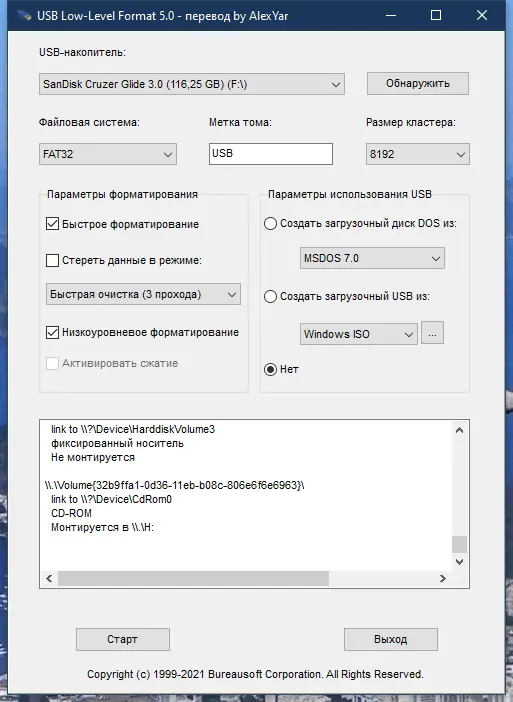 Работа с USB Low-Level Format