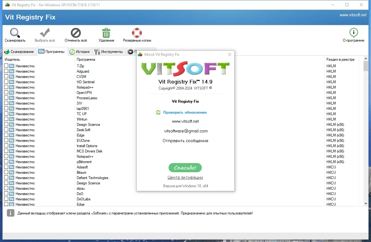 Работа с Vit Registry Fix