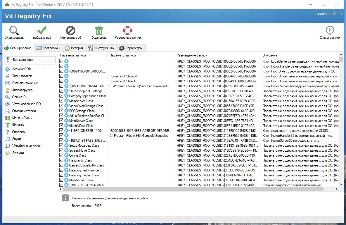 Vit Registry Fix — это системная утилита, ориентированная на восстановление и ускорение работы операционной системы через исправление ошибок реестра. Программа анализирует структуру реестра, выявляя повреждённые, устаревшие или некорректные записи, и предлагает их безопасное удаление. Она поддерживает работу с ключевыми разделами, включая Software, и позволяет проводить как полную, так и выборочную очистку.