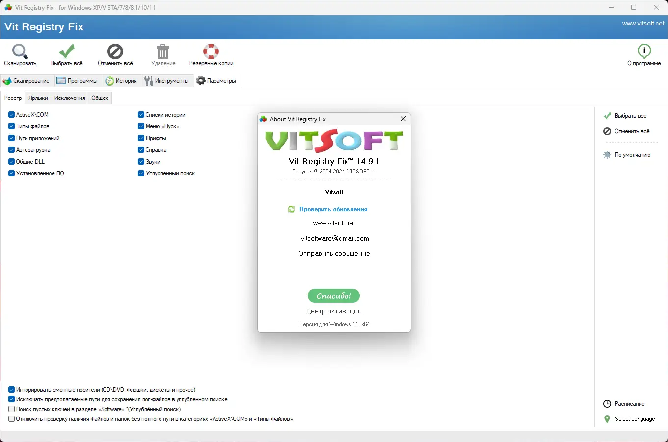 Работа с Vit Registry Fix