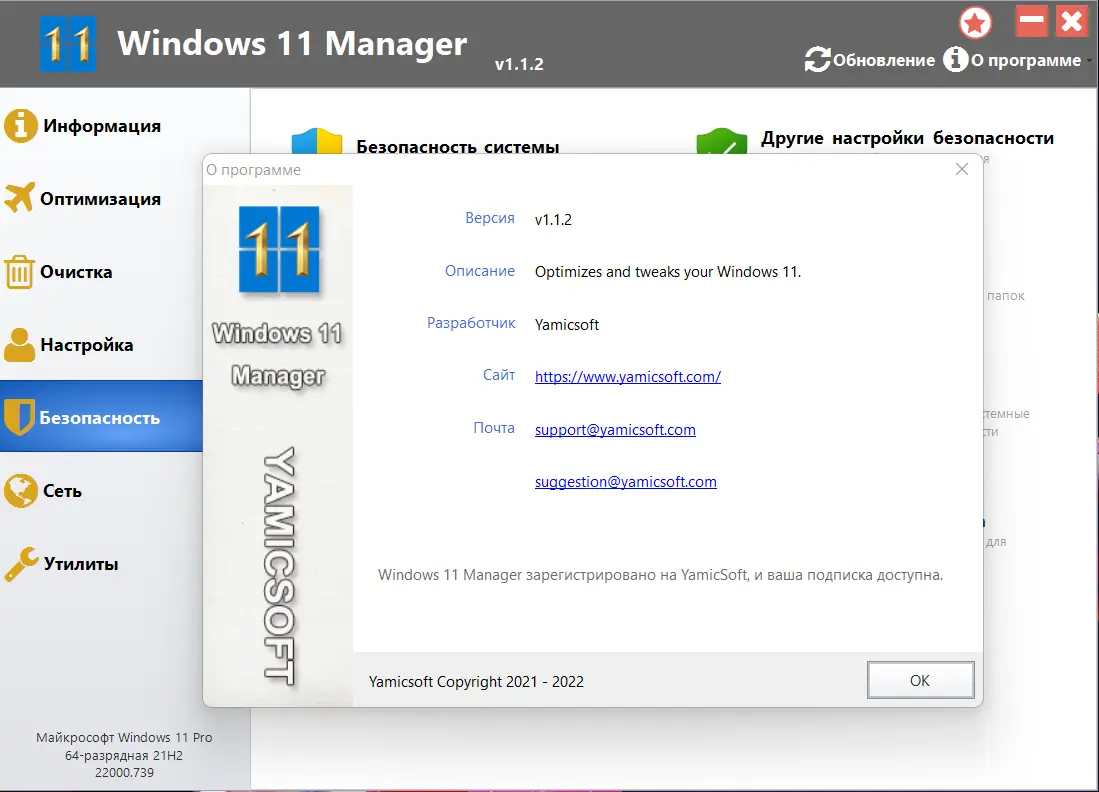 Windows 11 Manager — это комплексная утилита для оптимизации, настройки и обслуживания операционной системы Windows 11. Программа объединяет более сорока инструментов, направленных на повышение производительности, стабильности и безопасности системы. С её помощью можно быстро очистить реестр, ускорить загрузку ОС, настроить параметры интерфейса и восстановить работоспособность системы после сбоев.