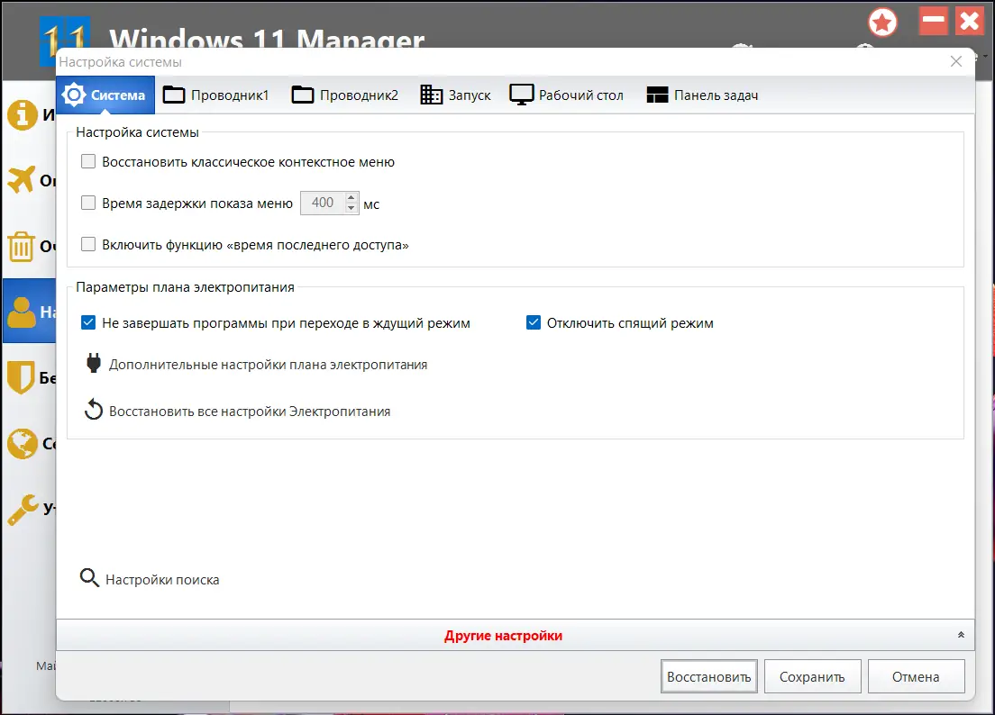 Windows 11 Manager разработан специально для пользователей одиннадцатой версии Windows и предлагает широкий спектр функций для тонкой настройки и обслуживания системы. Утилита позволяет проводить диагностику оборудования, управлять автозагрузкой, оптимизировать службы и драйверы, а также восстанавливать системные настройки. Программа поддерживает русский язык и имеет интуитивно понятный интерфейс, что делает её доступной даже для новичков.
