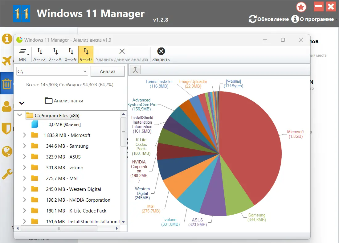 Windows 11 Manager — это мощное программное обеспечение, разработанное специально для операционной системы Windows 11, позволяющее эффективно управлять системными процессами, настройками и ресурсами. Программа охватывает широкий спектр функций, начиная от диагностики и очистки системы и заканчивая персонализацией внешнего вида и защитой конфиденциальных данных. Она подходит как для опытных пользователей, так и для тех, кто впервые сталкивается с необходимостью оптимизации системы.