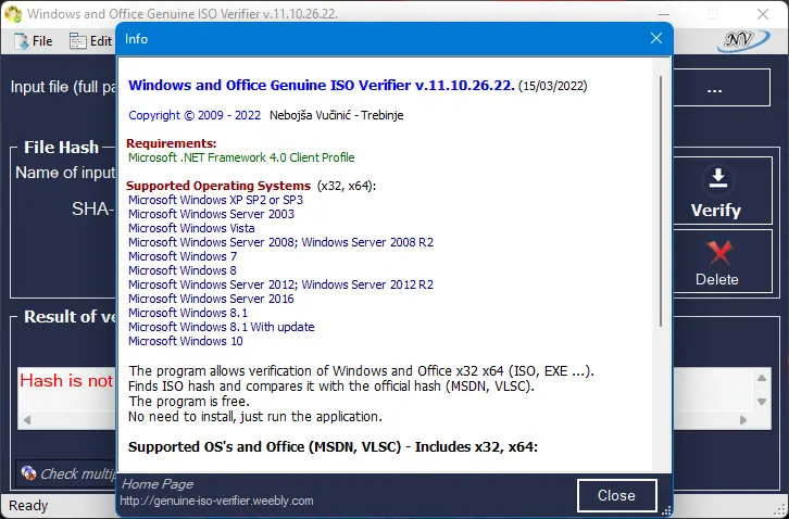 Windows and Office Genuine ISO Verifier — это небольшая, но мощная утилита, предназначенная для проверки подлинности образов операционных систем Windows и пакетов Microsoft Office. Программа анализирует контрольные суммы ISO-файлов и сопоставляет их с официальными данными от Microsoft, обеспечивая высокую степень достоверности при установке программного обеспечения. Это особенно важно при загрузке дистрибутивов из непроверенных источников.