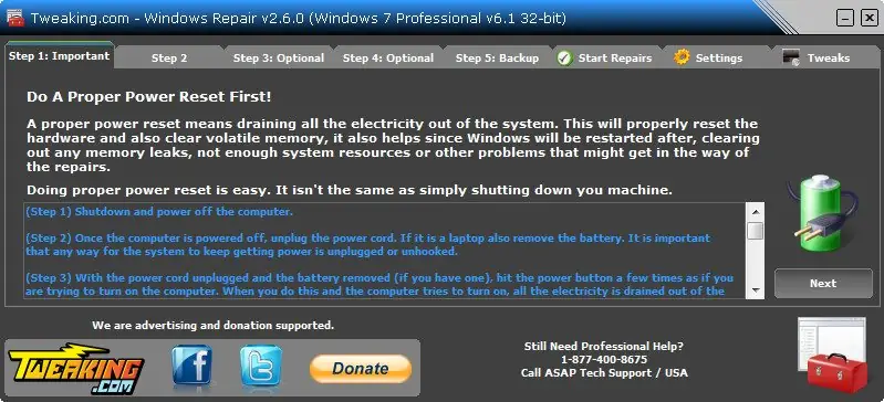 - Диагностика и ремонт компонентов Windows, таких как WMI, Winsock и DNS Cache