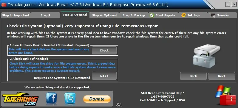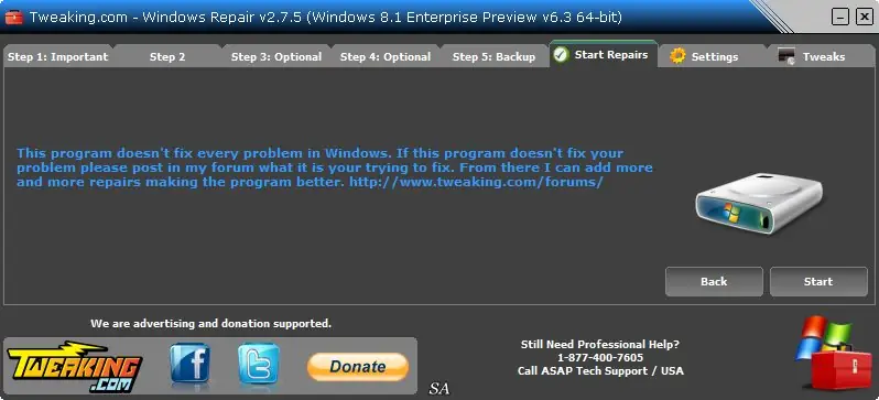 Интерфейс Repair интуитивно понятен и не требует специальных знаний. После запуска приложение предлагает выполнить базовую диагностику, после чего можно переходить к выбору режима ремонта: Basic, Advanced или Custom. В базовом режиме устраняются наиболее частые проблемы, в расширенном — производится полная очистка и восстановление, а пользовательский режим позволяет настроить список операций вручную. Каждая операция сопровождается пояснением, что позволяет контролировать процесс. Для удобства предусмотрена портативная версия, не требующая установки и работающая с любого носителя.