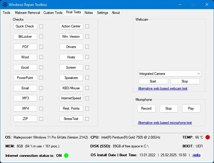 Repair Toolbox сочетает в себе гибкость, функциональность и простоту использования, что делает его ценным помощником при обслуживании компьютера. Программа экономит время, избавляя от необходимости вручную искать, скачивать и настраивать сторонние утилиты. Благодаря подробно организованной структуре и множеству настроек, она подходит как для домашнего, так и для профессионального использования. Несмотря на обширный функционал, интерфейс остаётся лёгким и не перегруженным.