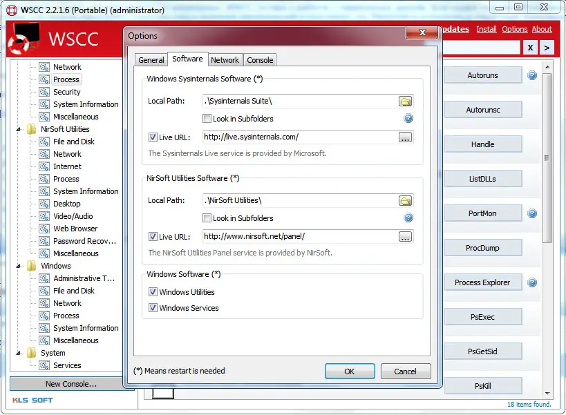 После запуска программа автоматически сканирует систему на наличие уже установленных пакетов Sysinternals и NirLauncher. Если они обнаружены, WSCC интегрирует их содержимое без необходимости повторной загрузки. В противном случае пользователю предлагается скачать необходимые утилиты напрямую с официальных сайтов разработчиков. Установка не требуется — достаточно распаковать архив и запустить исполняемый файл. Через встроенный менеджер обновлений можно проверять актуальность версий всех подключённых утилит и при необходимости обновлять их. Для запуска инструментов с определёнными параметрами используется встроенная консоль, что особенно полезно при автоматизации задач. Поддержка 64-битных версий позволяет выбирать наиболее подходящую разрядность приложений в зависимости от конфигурации системы.