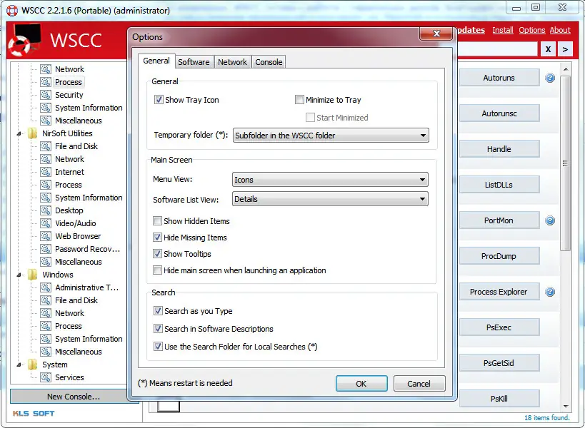 System Control Center представляет собой централизованное решение для запуска и управления разнообразными системными утилитами, включая инструменты из пакетов Sysinternals Suite и NirLauncher. Интерфейс программы организован таким образом, чтобы максимально упростить навигацию по большому количеству приложений. Каждая утилита сопровождается кратким описанием, иконкой и ссылкой на справку, если таковая доступна. Группировка по категориям позволяет быстро находить нужный инструмент — будь то анализ процессов, настройка реестра или диагностика сети. Программа поддерживает табличное и иконочное представление, что даёт гибкость в выборе способа отображения содержимого. Также реализована функция избранного, позволяющая закреплять наиболее часто используемые утилиты для мгновенного доступа.