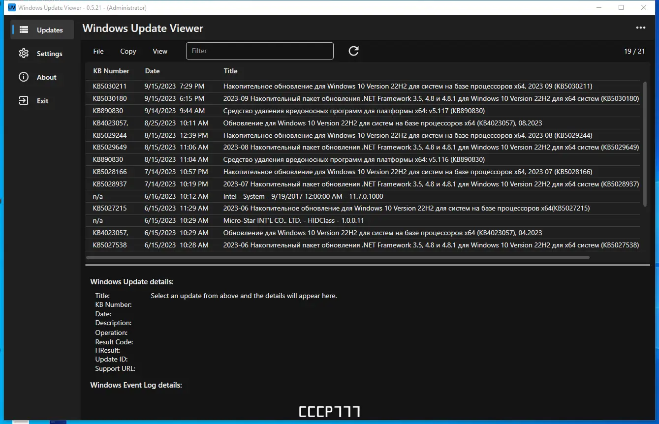 - Обновления, не имеющие номера KB или представленные в нестандартном формате, не отображаются в списке, так как программа не может сопоставить их с записями в журналах.