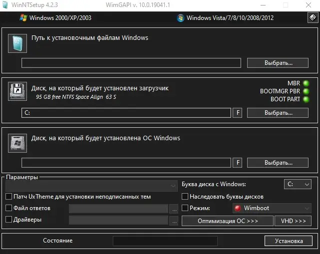 WinNTSetup — это компактная и эффективная утилита для создания загрузочных модулей и установки операционных систем Windows на жесткий диск или съемный носитель. Программа позволяет быстро подготовить установочный носитель без необходимости использования стандартных установочных ассистентов. Она поддерживает широкий спектр версий Windows и предоставляет продвинутые настройки для тонкой настройки процесса установки.