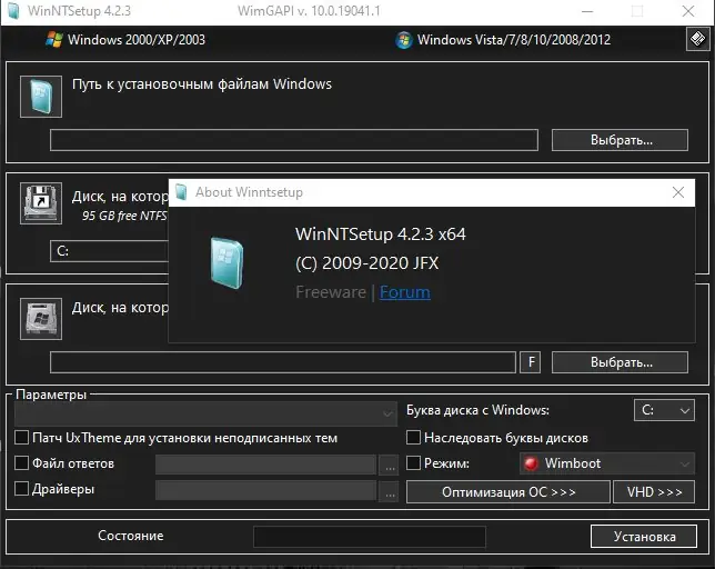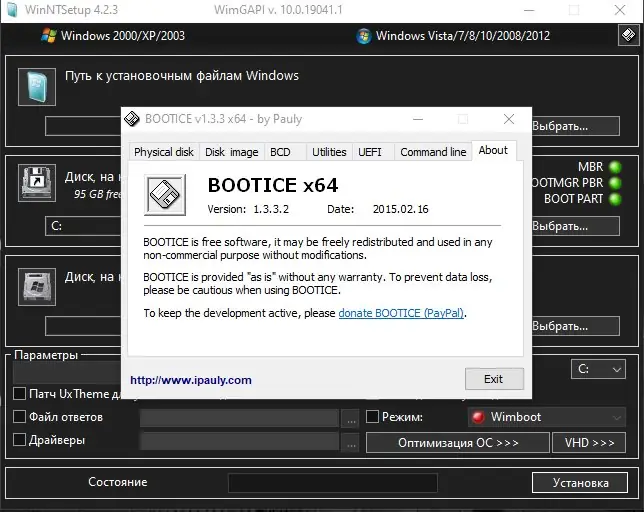 WinNTSetup — это утилита, предназначенная для развертывания операционных систем Microsoft Windows на жёстких дисках и съёмных носителях. Она работает напрямую с установочными образами, такими как WIM, SWM и ESD, и не требует создания полноценного установочного диска через стандартные средства. Программа позволяет установить систему без участия установочного ассистента, напрямую распаковывая образ в указанный раздел. Это особенно полезно при восстановлении системы или массовом развёртывании однотипных конфигураций. Утилита поддерживает как традиционный BIOS, так и UEFI, а также различные схемы разметки дисков — MBR и GPT. Благодаря портативной архитектуре, её можно запускать с любого носителя без предварительной установки.