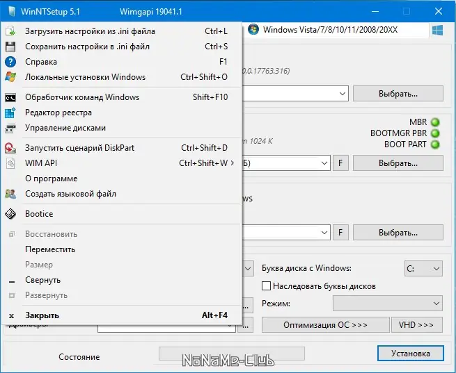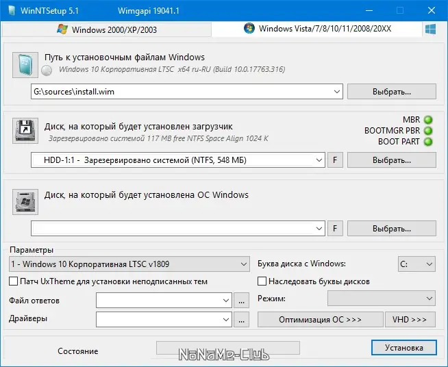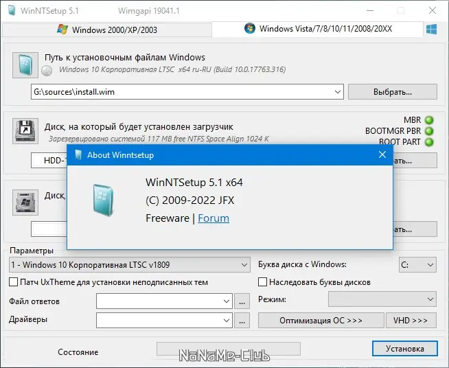 Работа с WinNTSetup