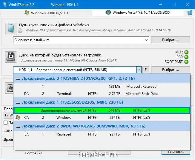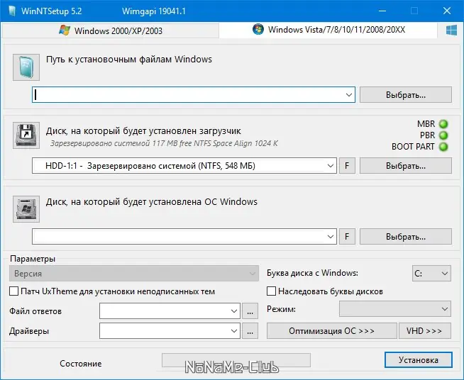 Работа с WinNTSetup