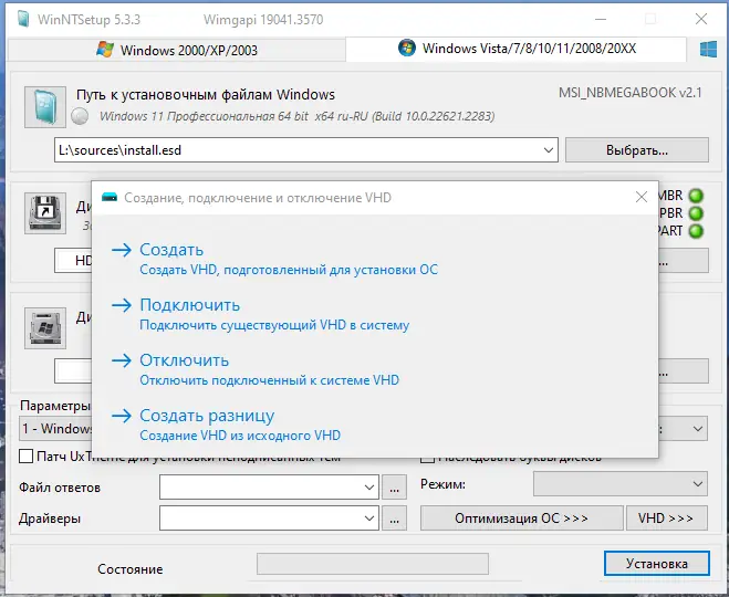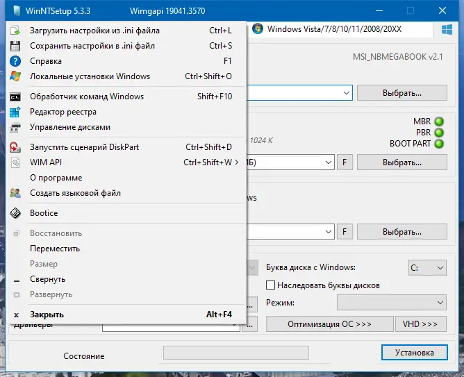 WinNTSetup представляет собой компактный инструмент для развертывания операционной системы Windows напрямую с образа на выбранный раздел диска. В отличие от традиционных установщиков, она не требует создания загрузочной флешки или перезагрузки в среду WinPE, хотя полностью совместима с такими сценариями. Утилита работает с различными форматами образов, включая сжатые WIM и ESD, и поддерживает современные технологии, такие как WimBoot и Windows To Go. Программа активно используется системными администраторами, сборщиками образов и продвинутыми пользователями, которым нужно быстро и гибко установить систему. Установка возможна как на физические, так и на виртуальные диски, включая VHD и VHDX.