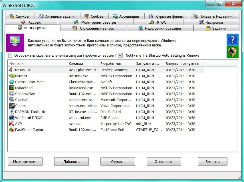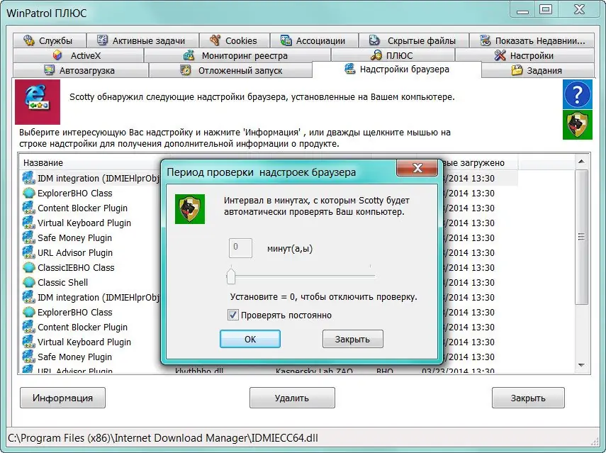 Работа с WinPatrol