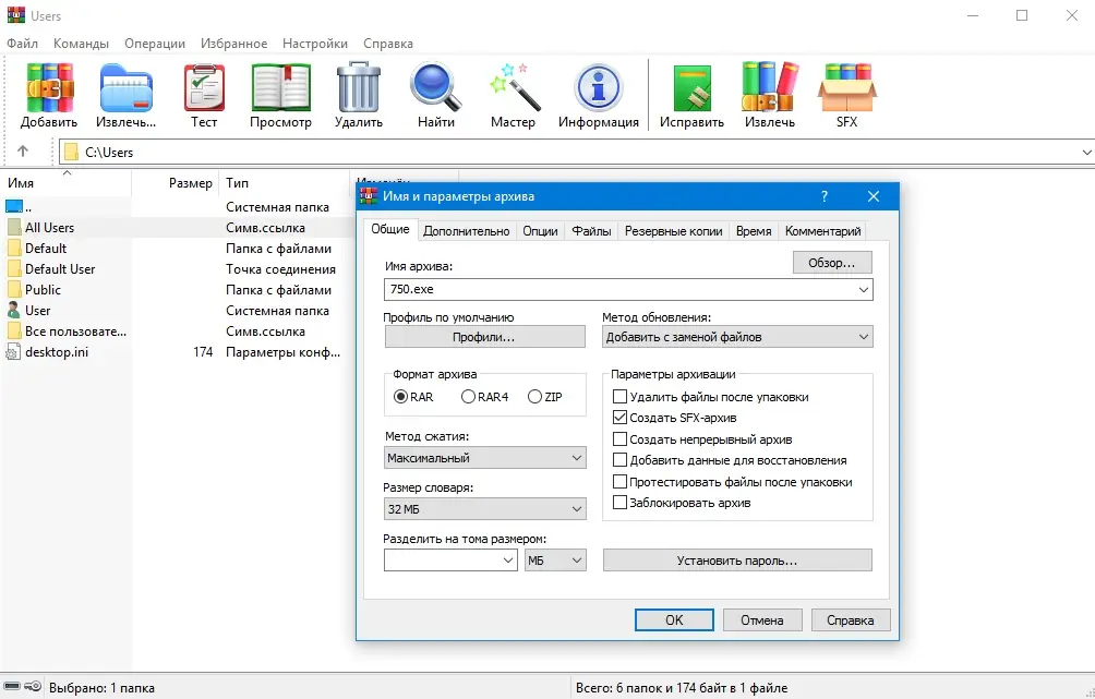 Работа с WinRAR