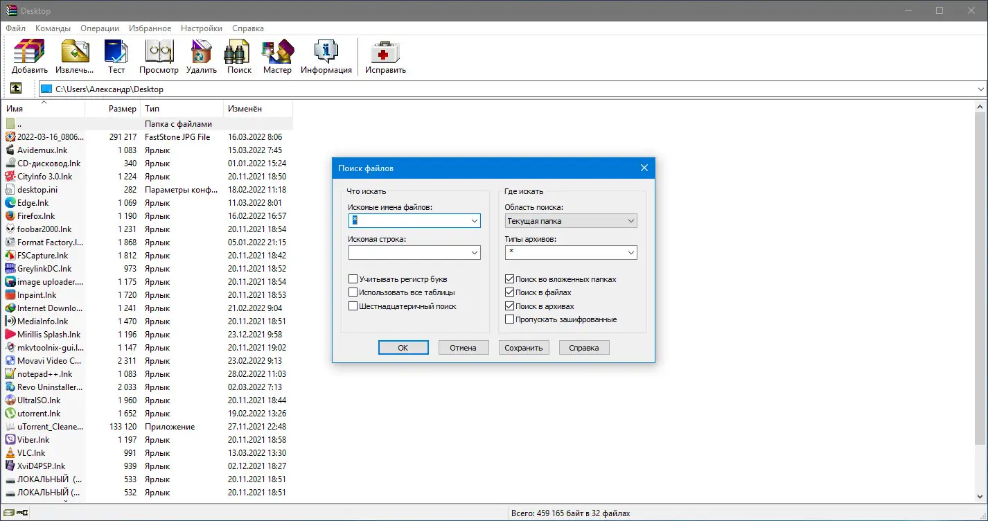 - Поддержка множества форматов, включая редкие, такие как ARJ и LZH
