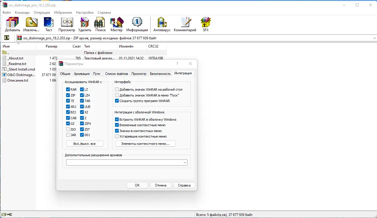 Работа с WinRAR