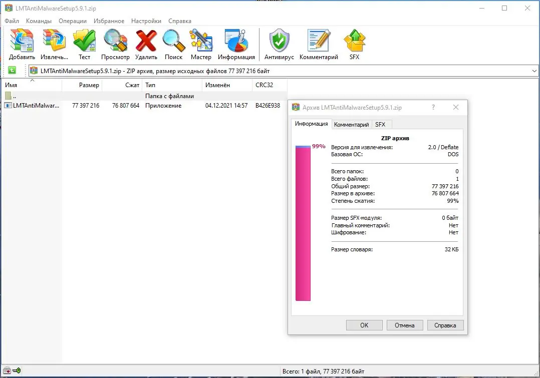 Программа сочетает в себе высокую эффективность сжатия и широкие возможности настройки, что делает её незаменимой для управления файлами.