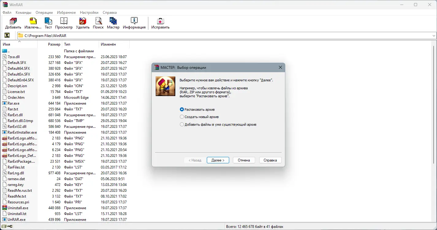Работа с WinRAR