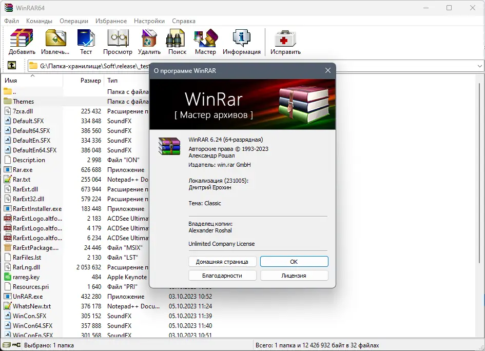 WinRAR — мощный и универсальный архиватор, обеспечивающий высокую степень сжатия файлов и поддержку множества форматов. Программа активно используется для создания, распаковки и управления архивами, включая многотомные и самораспаковывающиеся. Её отличает надёжность, скорость и широкий набор функций для работы с данными.