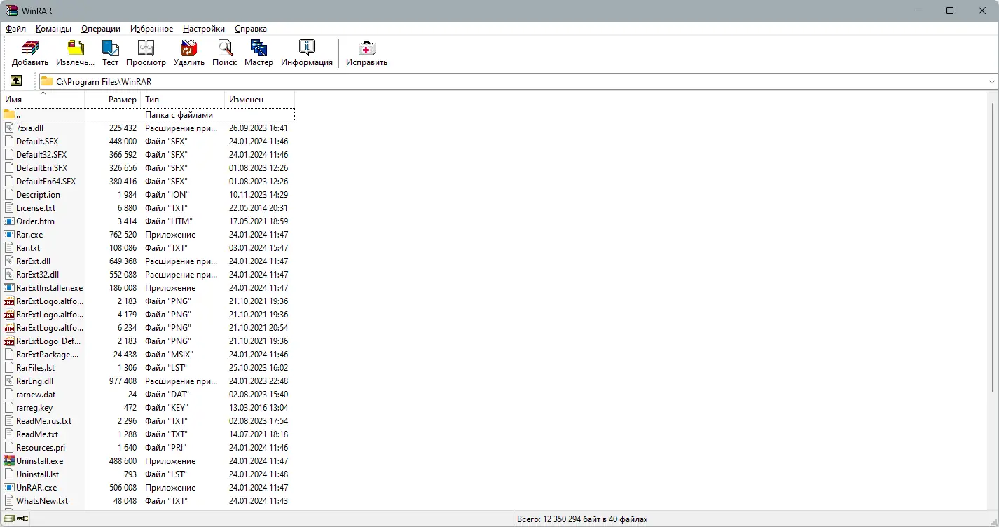 WinRAR — мощный и универсальный архиватор, поддерживающий широкий спектр форматов, включая RAR, ZIP, 7-Zip, ISO и другие. Программа обеспечивает высокую степень сжатия, шифрование данных и работу с многотомными архивами. Подходит для эффективного управления файлами на компьютерах под управлением операционных систем семейства Windows.