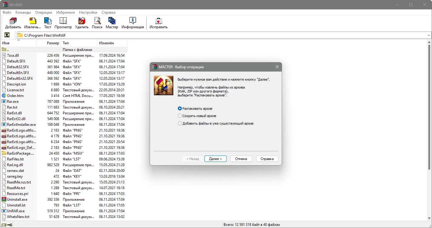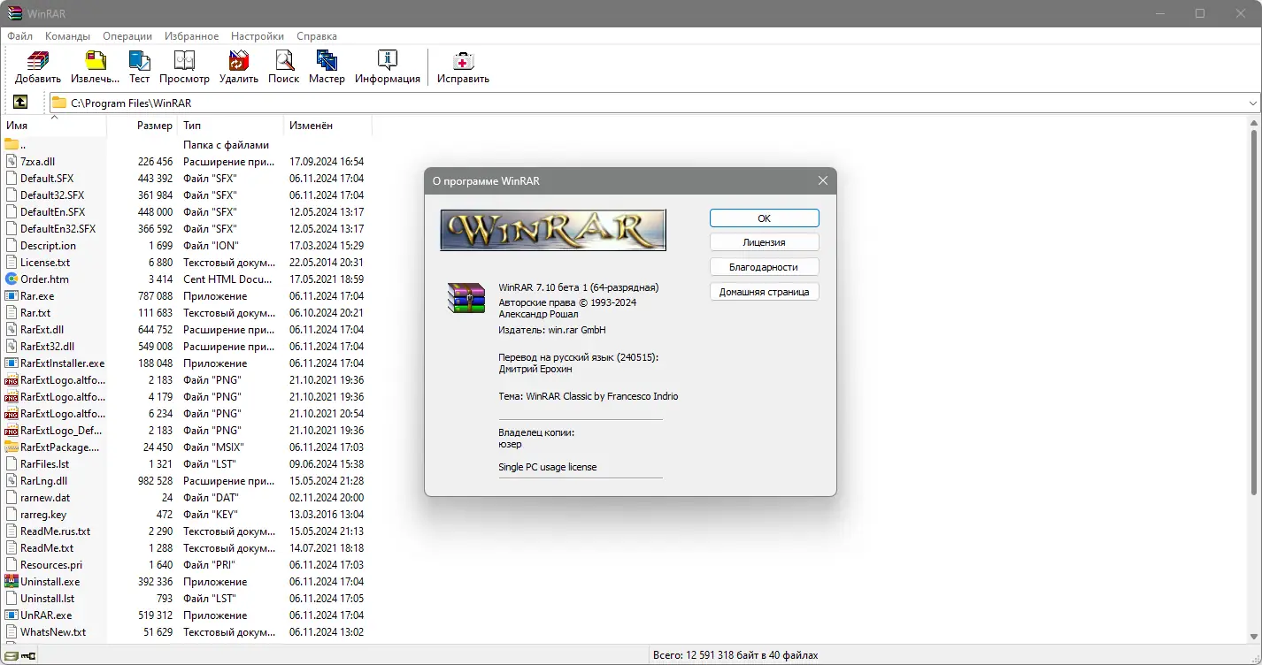 WinRAR — это мощный и универсальный архиватор, поддерживающий широкий спектр форматов, включая RAR, ZIP, 7Z, ISO и другие. Программа обеспечивает высокую степень сжатия, шифрование данных и восстановление повреждённых архивов, что делает её незаменимой в повседневной работе с файлами.