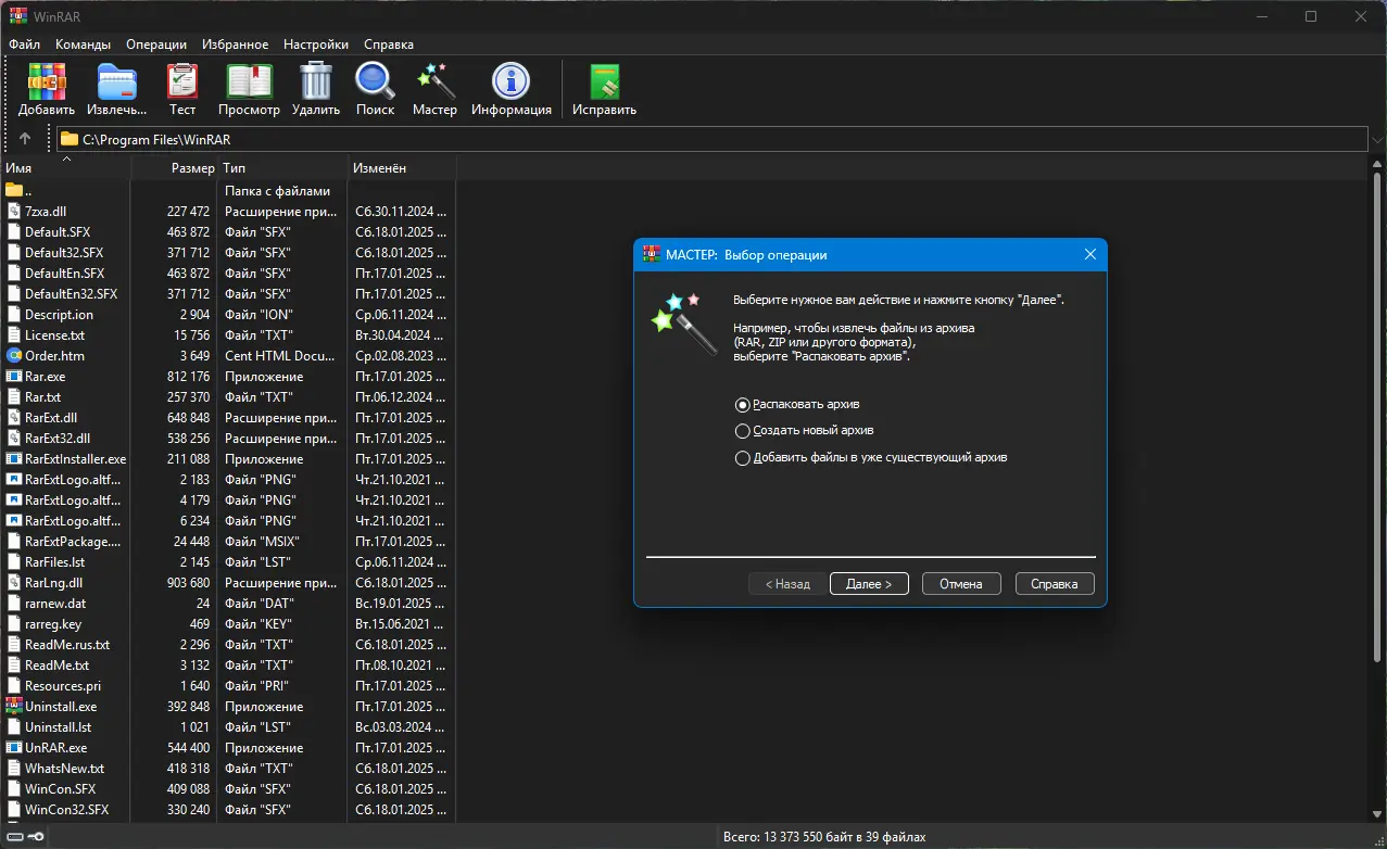 Описание WinRAR