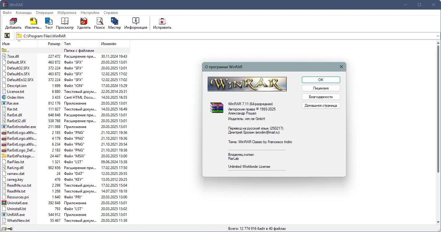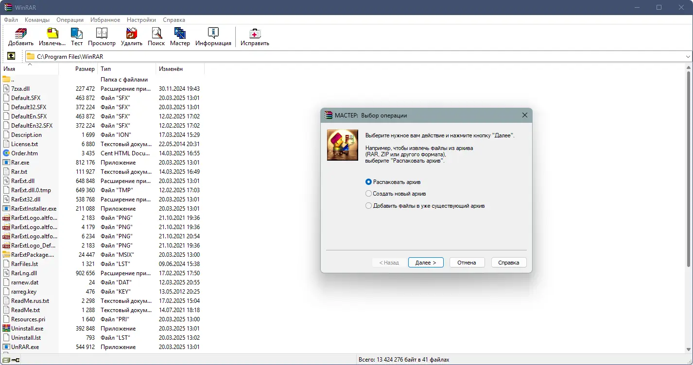 WinRAR — это одна из самых популярных системных утилит в категории архиваторов, предназначенная для сжатия, упаковки и распаковки файлов. Программа использует уникальный алгоритм сжатия, оптимизированный для различных типов данных, включая мультимедийные и текстовые файлы. Она поддерживает формат RAR, а также может работать с ZIP, 7Z, TAR, GZ, BZIP2, ISO и другими распространёнными форматами, что делает её универсальным инструментом для управления данными. Благодаря поддержке многотомной архивации, пользователи могут разбивать большие файлы на части, удобные для хранения или передачи. Функция создания самораспаковывающихся архивов позволяет получателю распаковывать данные без установки дополнительного ПО.