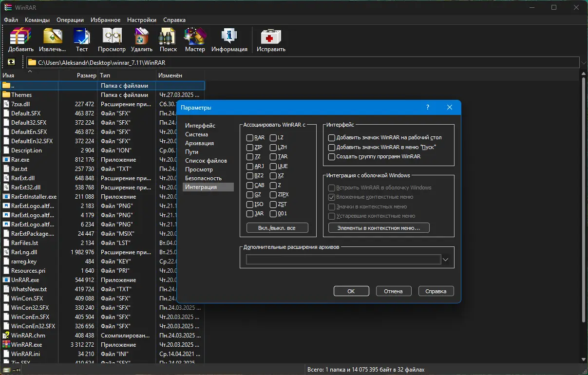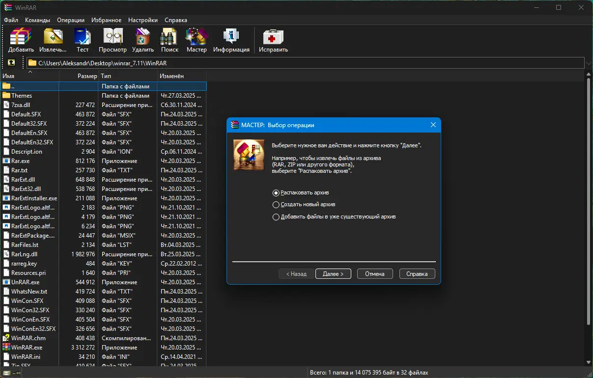 Работа с WinRAR